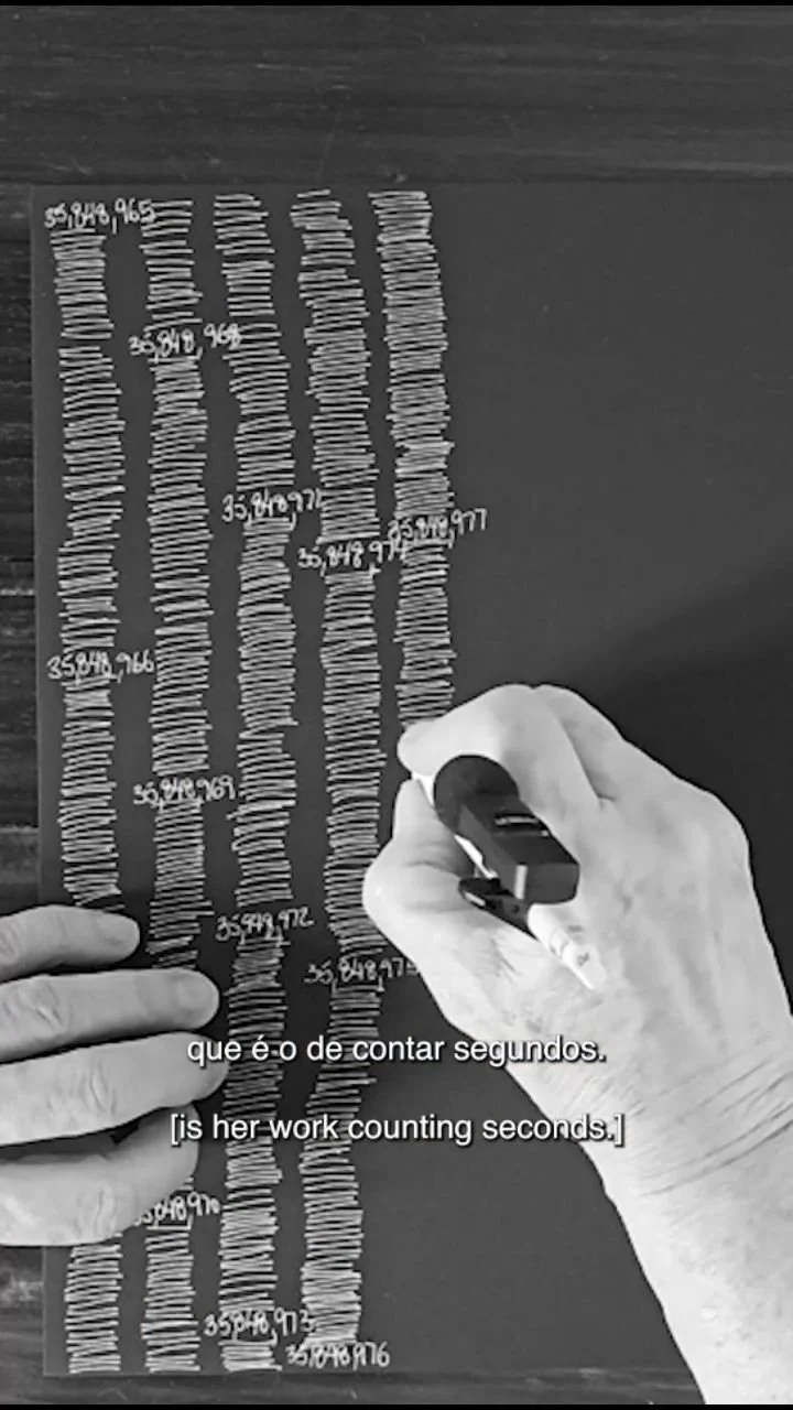In the artist's conception and universe, her production and herself are inseparable. Her life is art. Her art is not a representation of life, it is life itself. If she is alive, she is producing something. She calls this something art, but it is also, or mainly, a trace of her passage through the world, and of the passage of time over her. The time that passes for the artist is the same time that passes for each one of us. Her work is deeply personal, depicting in simple maps her movements throughout a day, every day of her life. But these movements, and the seconds that she has also been silently counting for decades, are the same movements that we make, the same identical seconds that we live. There is no difference, there are no hierarchies, the artist's time is no more or less important than the time of each one of us. Ana Amorim's work is deeply democratic, collective, and inclusive, even when the subject seems to be just a square representing the house she did not leave that day. She spent the day embroidering, or perhaps organizing her notebooks, each page with its map and its date. She may have also cooked something, done some laundry, or read the newspapers to be stunned, once again, by the absurdities of the world. A day like so many others.